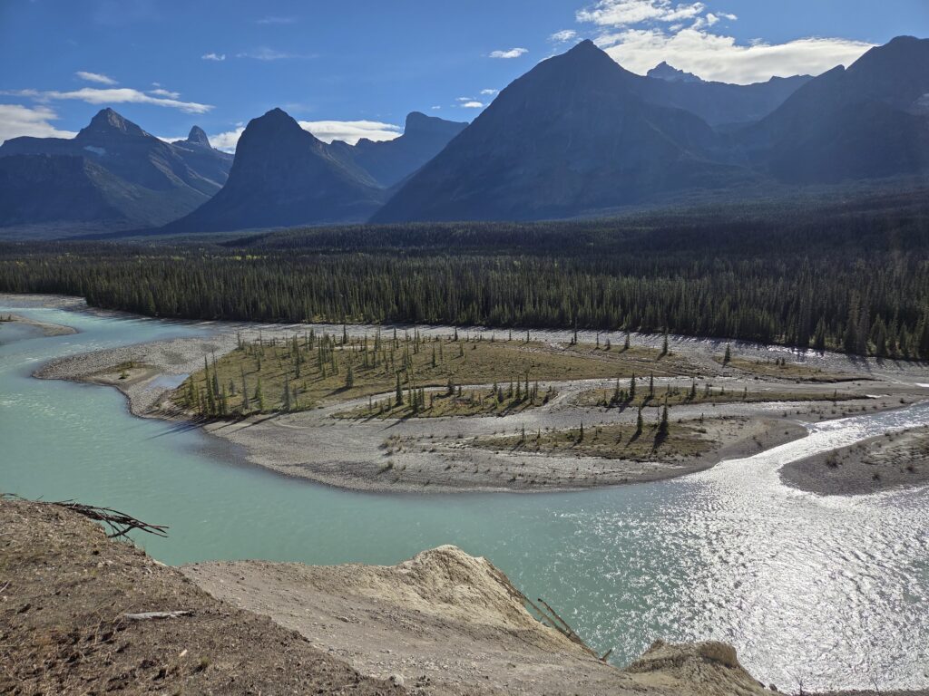 As we traveled north, following the Saskatchewan River, we entered Jasper National Park, the largest national park in the Canadian Rockies at over 11,000 square kilometers (4,247 square miles). As a comparison, Yellowstone National Park is 3,472 square miles. Just outside the Town of Jasper, we took a couple hours and hopped on the Jasper Tram to the top of Whistler Mountain. The views were fantastic, as we could see for 50 miles in every direction!