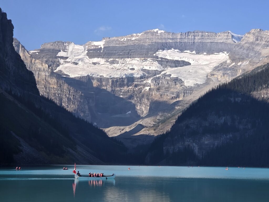 Banff National Park is Canada’s first national park and the flagship of the nation’s park system. Banff is part of the Canadian Rocky Mountain Parks UNESCO World Heritage Site. Driving north from the town of Banff, you enter the Icefields Parkway, a 144-mile scenic highway that connects Banff National Park and Jasper National Park. This highway is surrounded by towering mountain peaks, with dozens of huge glaciers that seem to be hanging on the edges of cliffs, or tucked away in the high valleys. The glaciers in this area are all part of the Columbia Icefield and are believed to be between 45 and 120 million years old. But even more stunning are the lakes that the runoff from the glaciers form!