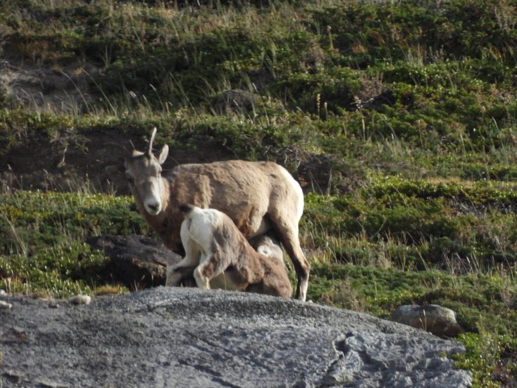 One thing we always seek out during our vacation journeys is the chance to see/photograph wildlife. I knew these parks had an abundance of critters-from Grizzly Bears to Ground Squirrels, though it was a bit more challenging finding them. We were told the recent wildfires that have scorched thousands of acres of forests had a lot to do with it. But having visited many national parks in both the U.S. and Canada, we think the large crowds of people also looking for wildlife, contributed to the animals staying out of sight. Despite the many herds of humans we saw, we did manage to find many Elk, a couple female Moose and a few female Bighorn Sheep with babies that were still nursing.